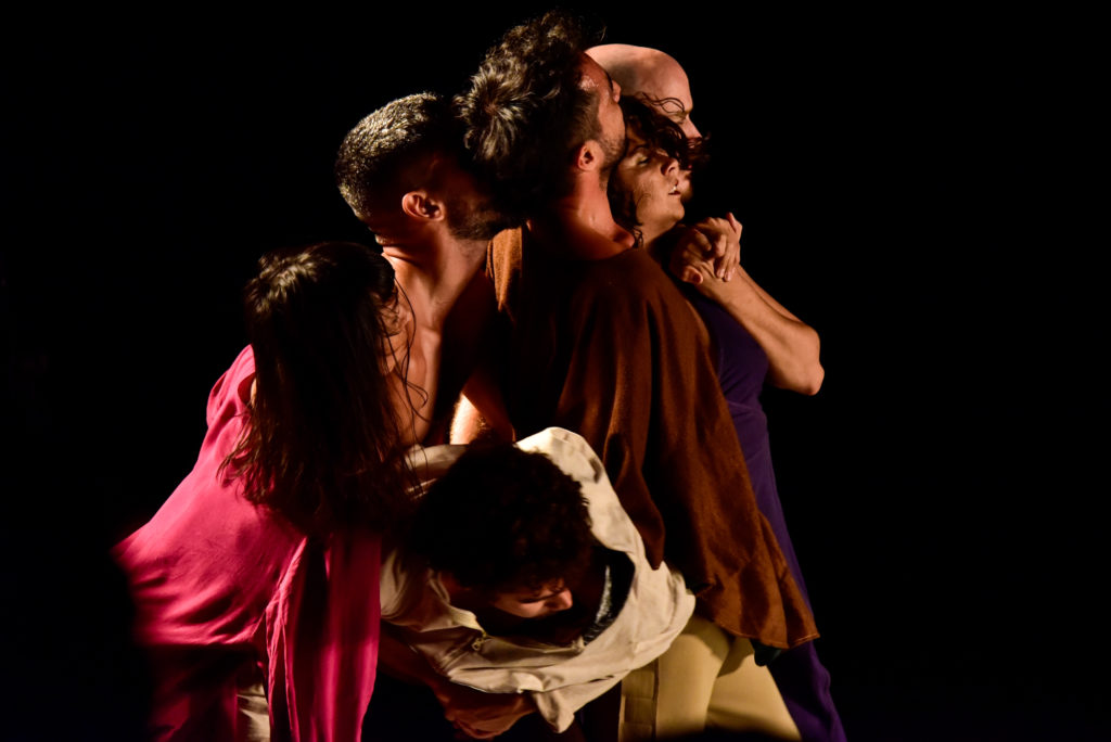 A ideia é que a criação aconteça sem a figura de um encenador, ou diretor, dramaturgo ou cenógrafo. O espectador seria, assim, co-criador da montagem. No entanto, percebo que parte do público se desconecta. Em cena, corpos exaustos pelo movimento e um eterno vai e vem. Encontro neste ponto uma relação com experiências que criam um diálogo. A transição constante, a necessidade de seguir em frente, os tropeços, a exaustão, as ligações humanas e os pés cansados. Essas conexões me despertam.