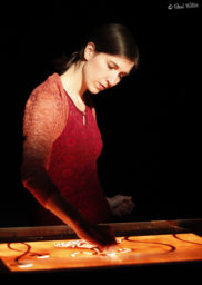 Lorène Bihorel afirma com este espetáculo a sua singularidade artística. Em uma mesa de luz, os desenhos nascem e se transformam. Projetados ao fundo do palco, eles formam um eco para as palavras.