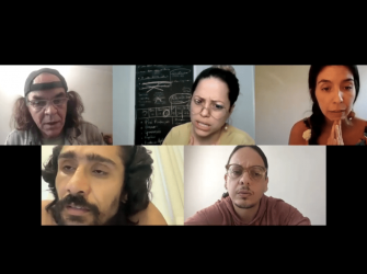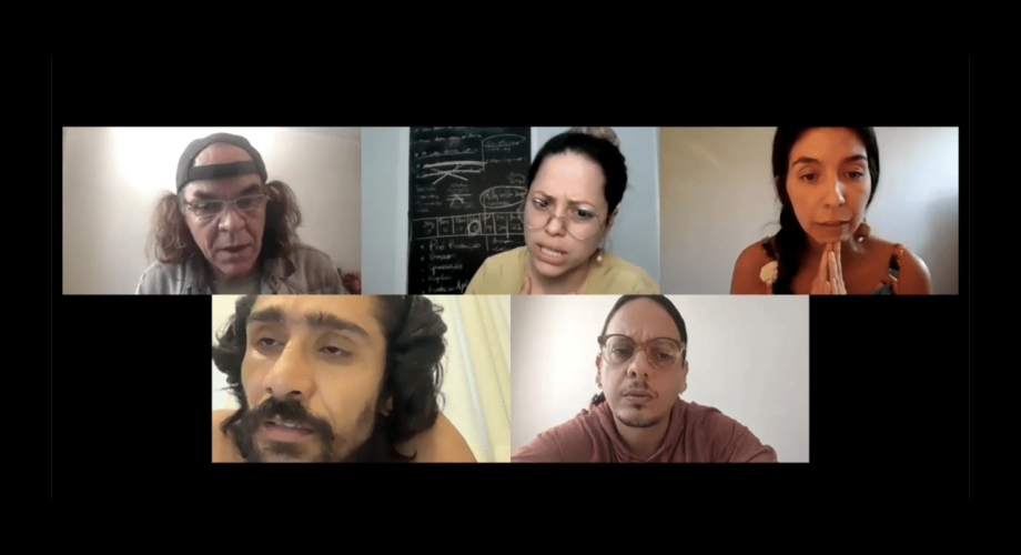 Um grupo de teatro em total isolamento social se reúne virtualmente para pensar no tema do novo espetáculo a ser encenado nas plataformas digitais.